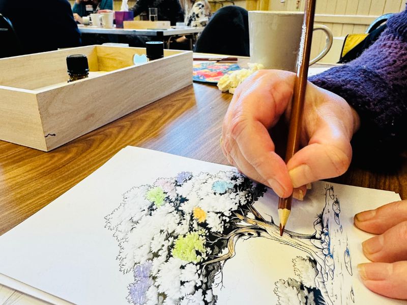 We also took a quiet moment to honour the trees lost in Cornwall’s storms by colouring pictures of them — a small, grounding ritual that opened gentle conversation about loss and resilience. The room was full of listening, honest sharing and compassionate company, and we finished with a short circle where many people said they felt lighter and better able to cope after being there. It was a peaceful, restorative afternoon — thank you to everyone who came and to our practitioners for holding such tender presence. If you’d like to join future cafés, we’d love to see you.